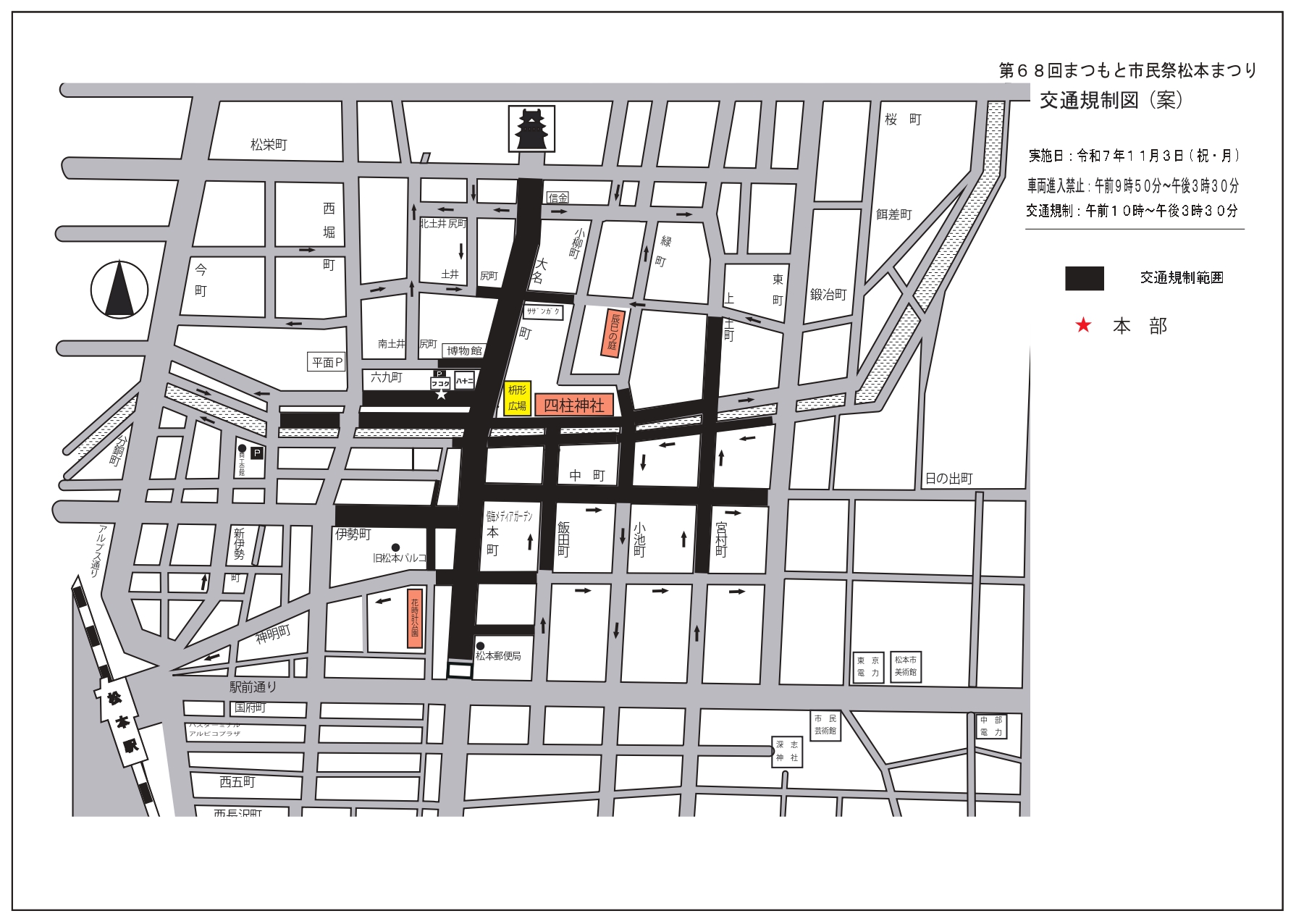 ・当日はアルピコ交通バスが迂回運転となります。チラシのバス迂回経路図をご確認ください。
