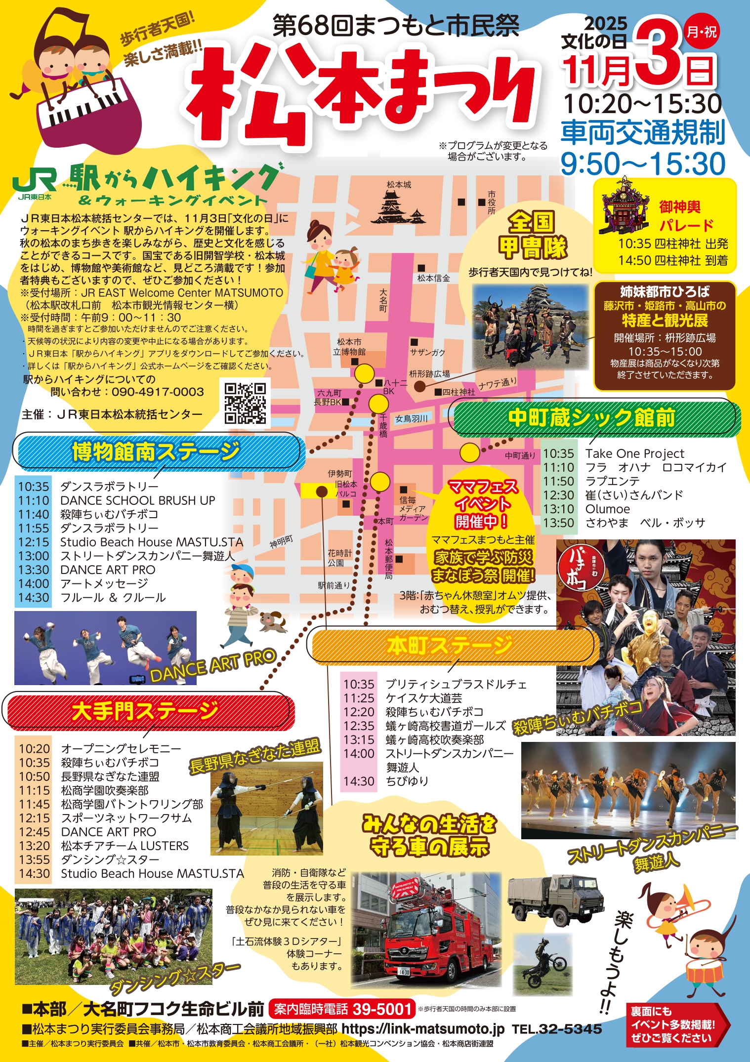 松本市の秋を代表するお祭り「第68回まつもと市民祭松本まつり」を開催いたします。